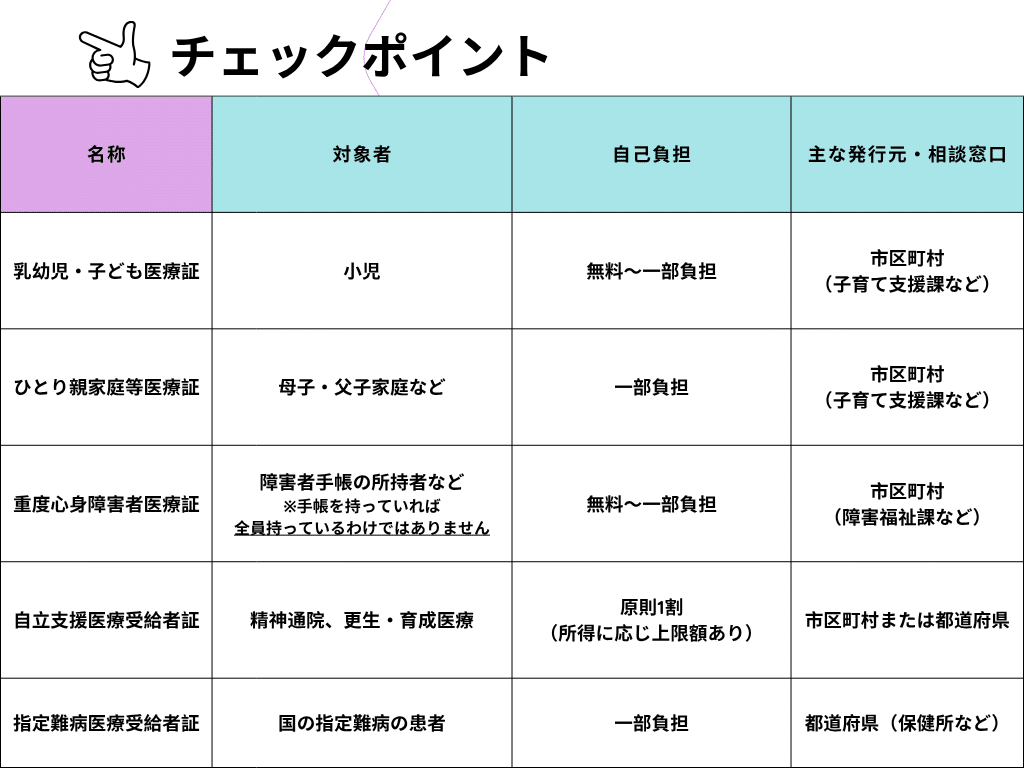 公費(医療証)の主な種類と特徴:負担軽減の仕組みを理解する